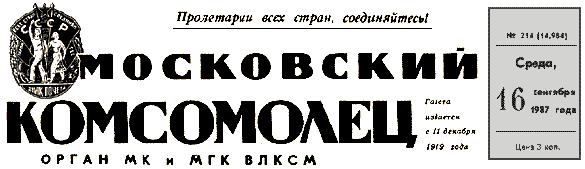 "Московский комсомолец" 16 сентября 1987 г. № 214 |