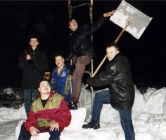 А дело подходило совсем близко к опасному пределу. Но Полковник (и здесь надо отдать ему должное!!!) очень заботился о своей гвардии... Переживал, болел душой. И благодарная гвардия не щадила живота своего, вкладывая все возможное и невозможное в общее дело... Гвардия едва не полегла на поле битвы, продолжавшейся с одним шестичасовым перерывом БОЛЕЕ СУТОК, но дело БЫЛО СДЕЛАНО! Сделано в практически полном соответствии с диспозией, и полностью уложившись в заявленные сроки... Скажу честно, мне искренне жаль тех, кто не принимал участие в этой битве титанов с погодой... Жаль, несмотря на то, что сейчас я с трудом попадаю дрожащими пальцами по клавишам... Дело того стоило! Сам процесс постройки оставил незабываемые впечатления, но не меньше - замечательное общение перед битвой, во время нее, и после... Ребята ( те, кто там присутствовали ) говорю, как на духу: вы молодцы!
