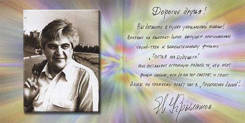 Не прошло и 20 лет, как компания "Бомба-мьюзик" выпустила саундтрек фильма "Гостья из будущего". CD включает в себя 13 фонограмм из фильма, оцифрованных с оригинальных носителей, предоставленных