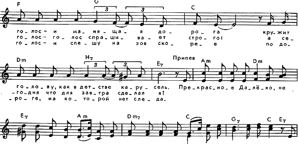 E7 Am E|----0--------------------------------------------------------------------- A|--------------------------------0----------------------------------------- D|---------------------9-----9---------------------------------------------- G|--------9-----9---9-----9-----------5----5-----5-----5-------------------- B|----9------9----(13)--(12)------5-----5----------------------------------- E|--(10)---(10)------------------------(8)---(5)---(5)---------------------- пре крас ное да ле ко